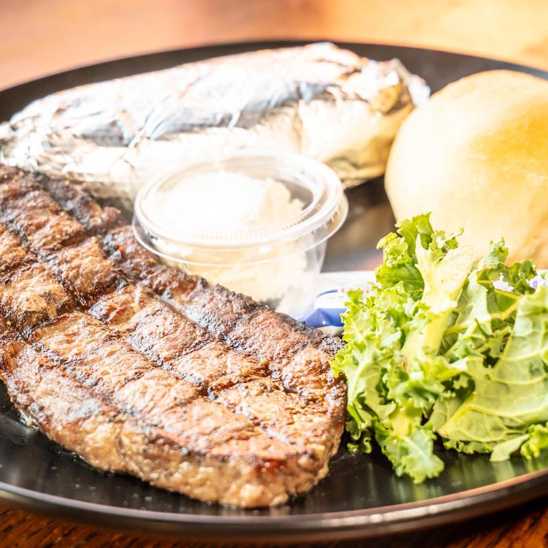 12 ounce hand-cut choice ribeye steak cooked to order.